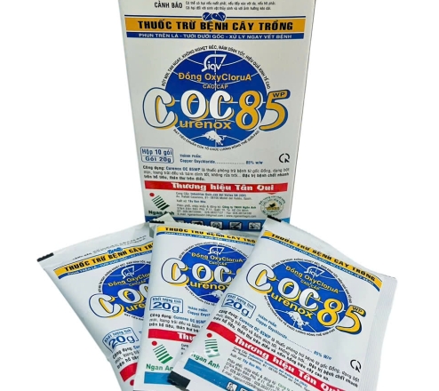 • Curenox OC 85wp là thuốc phòng bệnh từ gốc Đồng, dạng bột mịn, loang trải tốt đều, bám dính tốt và không rửa trôi.