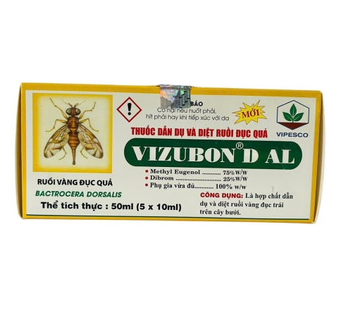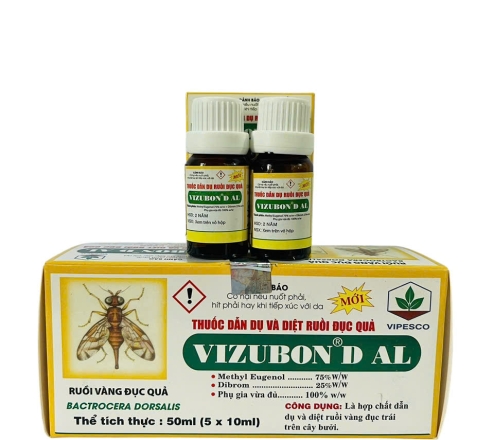 - Vizubon-D là một hỗn hợp gồm hai thành phần: Methyl Eugenol 75% + Dibrom 25%