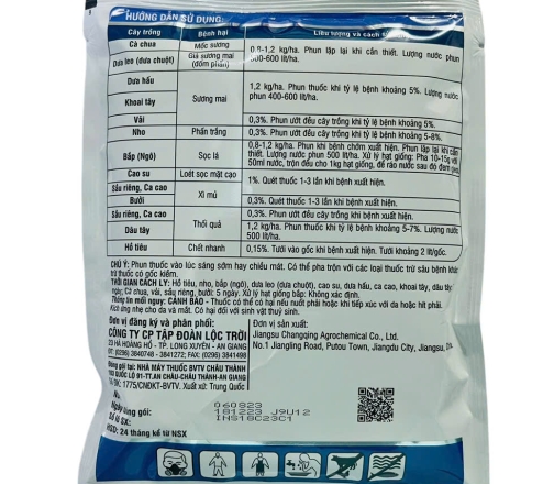 • Chống nấm mạnh mẽ 💪, giúp cây trồng phát triển khỏe mạnh và giảm thiểu thiệt hại do nấm gây ra.
