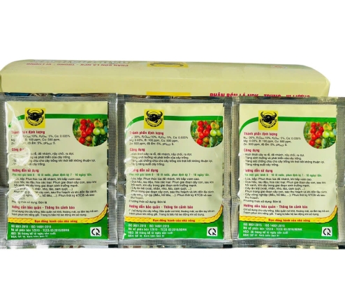 • 🔹 Pha 10g vào 8-10 lít nước, phun hoặc tưới cho tất cả các loại cây trồng.