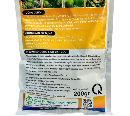 - Sản phẩm được đăng ký đặc trị bệnh sương mai trên trái cà chua.