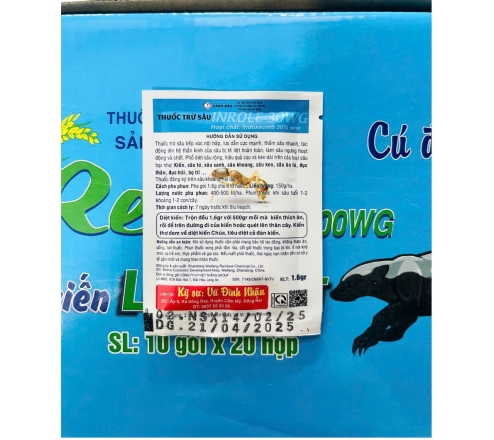 Diệt kiến: Trộn 1.6g với 500g mồi (loại mà kiến thích ăn) rồi để ở đường kiến hay đi hoặc quét vào thân cây, quét vào tổ. Kiến thợ sẽ đem mồi về tổ diệt kiến Chúa và tiêu diệt cả tổ kiến.